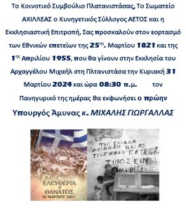 Εκδήλωση εορτασμού 25ης Μαρτίου και 1ης Απριλίου στην Πλατανιστάσα