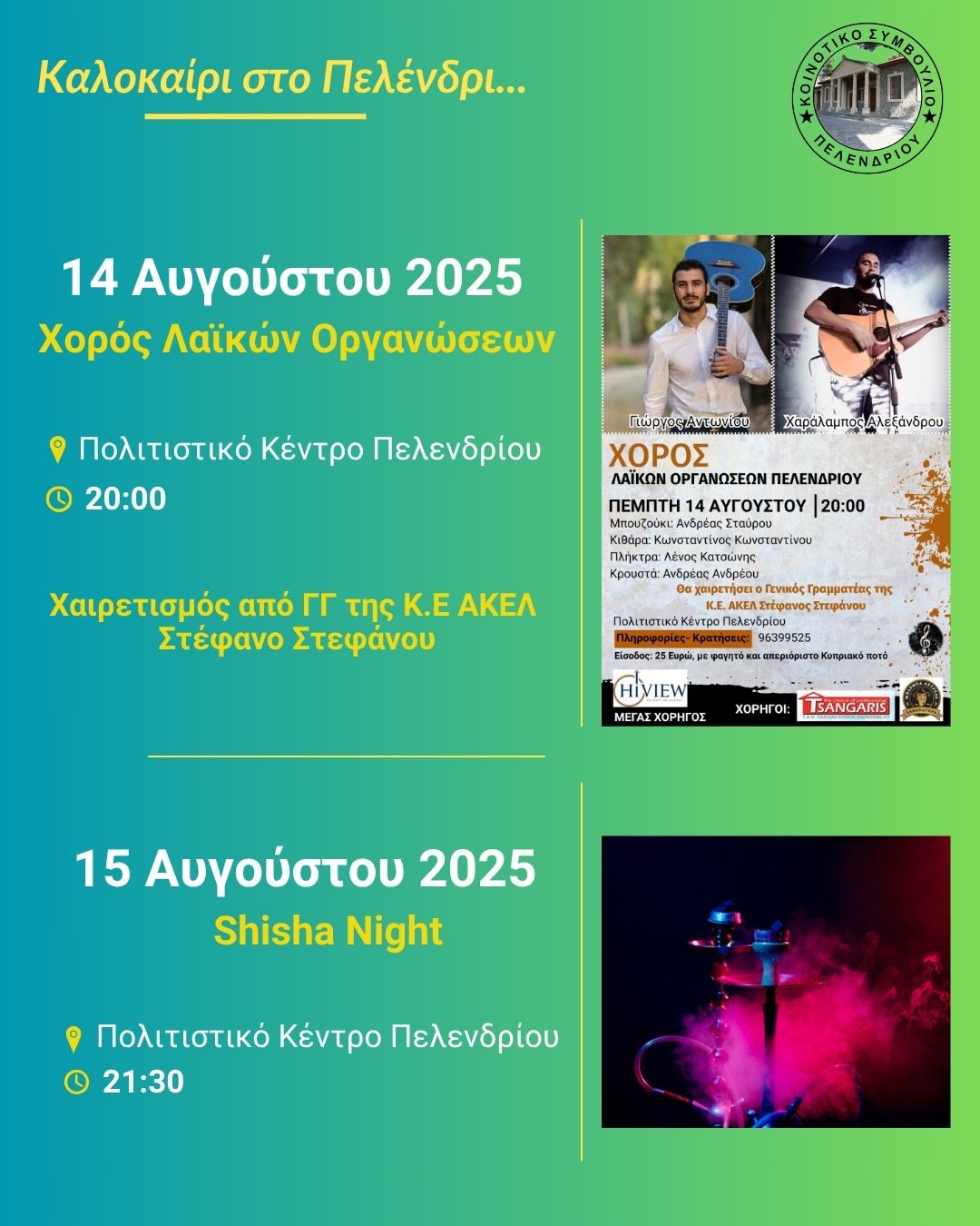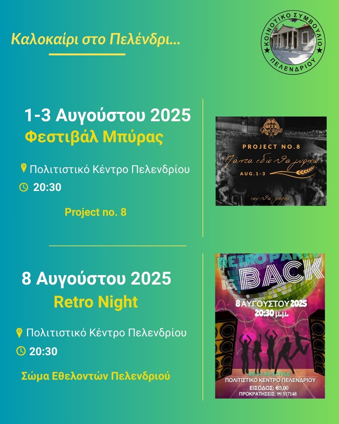 Το Κοινοτικό Συμβούλιο Πελενδρίου ανακοίνωσε το καλοκαιρινό του πρόγραμμα!