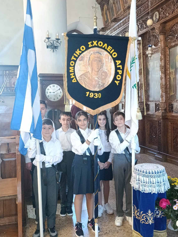 Ακολούθησε η παρέλαση των μαθητών των σχολείων του Αγρού, των προσκόπων, των οδηγών και των πολιτιστικών συλλόγων της κοινότητας, που διέσχισαν τον κεντρικό δρόμο του χωριού κρατώντας ψηλά την ελληνική και την κυπριακή σημαία.
