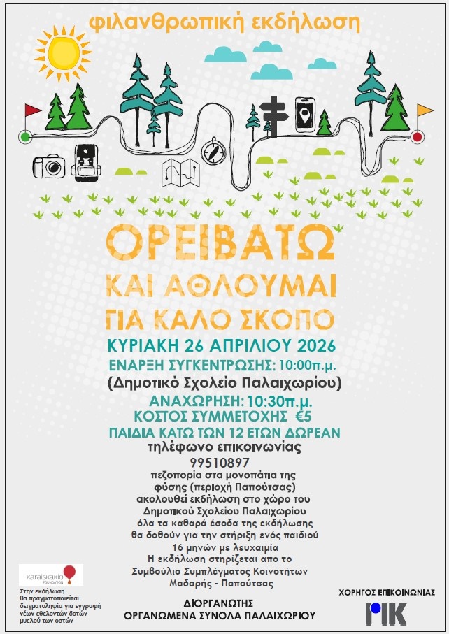 Ορειβατώ και Αθλούμαι για καλό σκοπό: Το Παλαιχώρι ενώνει δυνάμεις για ένα βρέφος 16 μηνών