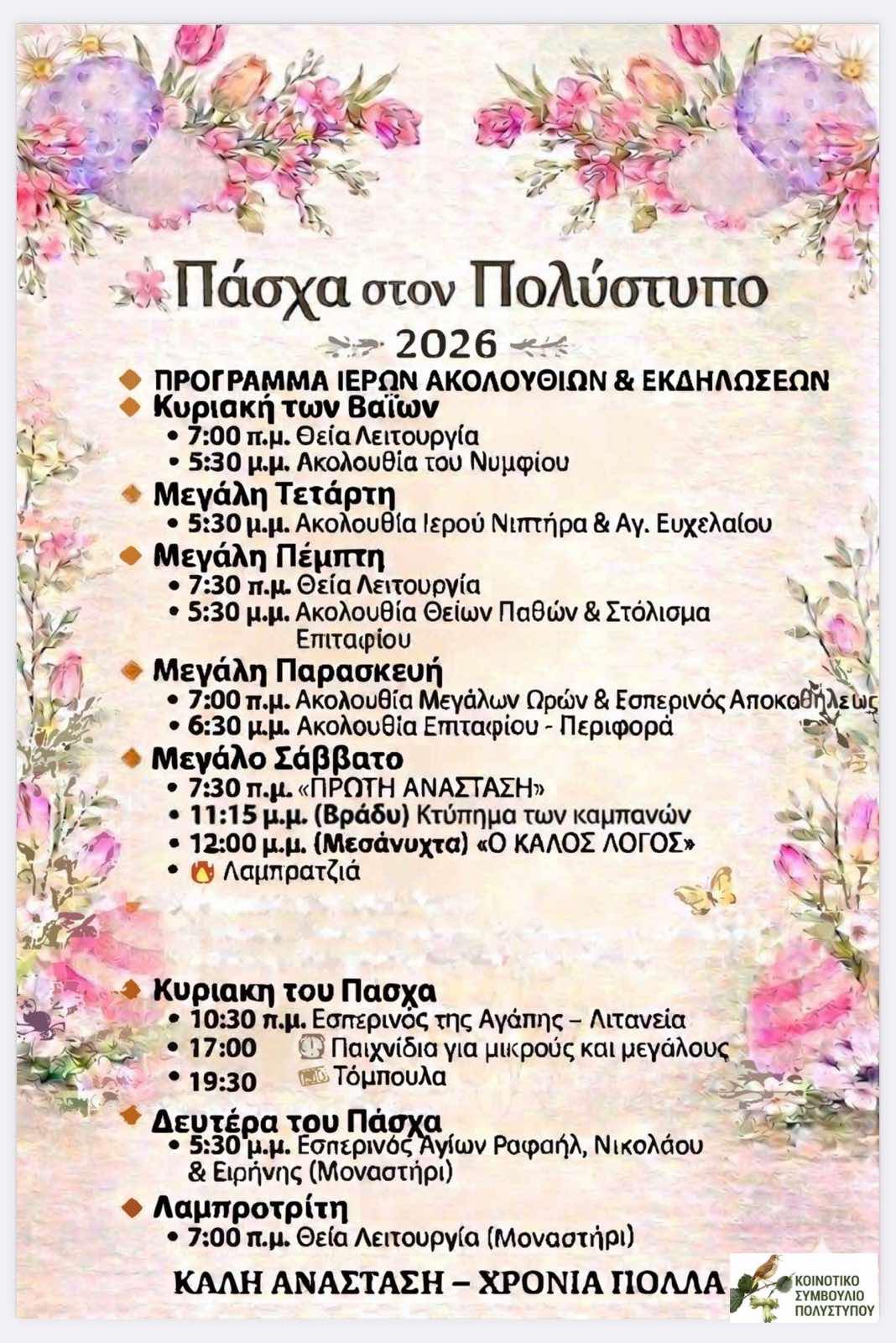 To Πάσχα στον Πολύστυπο έρχεται με παράδοση και πλούσιο πρόγραμμα